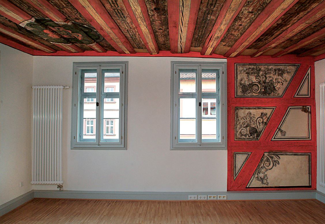 Armin und Herbert Rudolph haben einen der prachtvollsten Fachwerkbauten in Unterfranken mit großem Aufwand instandgesetzt. Das Gebäude liegt raumbildprägend am Marktplatz von Karlstadt. Seine Geschichte reicht bis in das Jahr 1425 zurück. Damals wurde es als zweigeschossiges Fachwerkhaus errichtet. Entscheidende Umbauphasen fanden 1453 und 1589 statt. Damals wurde das zweite Obergeschoss aufgestockt, ein neuer Fachwerkgiebel entstand.